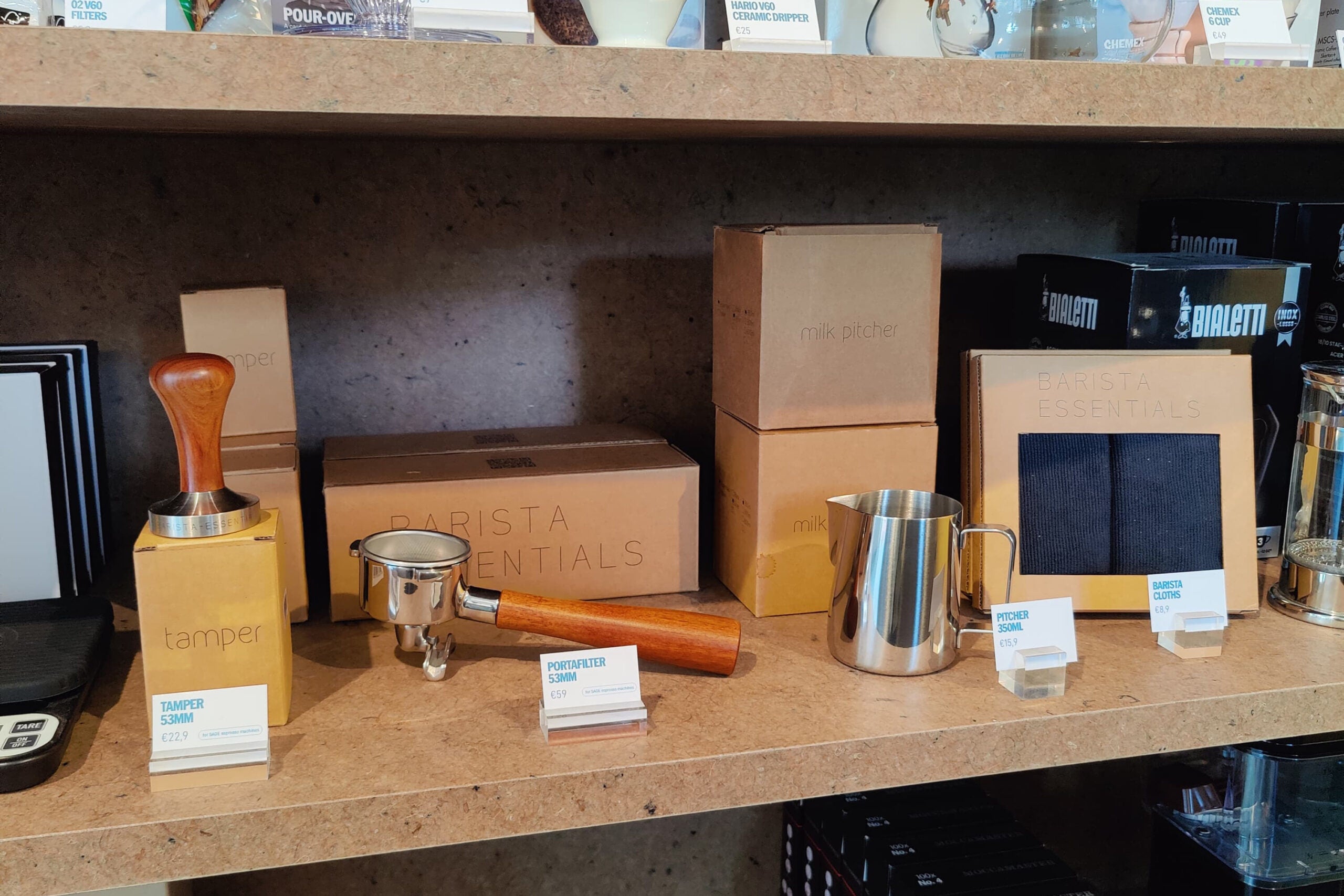 We are a webshop, but we know that many of our customers like to see and feel a product before buying. That’s why you can also find our tools on the shelves of some coffee shops and specialty stores.