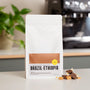 Tasting this coffee blend truly surprised us. It has a sweet, full body that beautifully highlights notes of caramel and chocolate. The real standout is the fresh, floral finish brought in by the Ethiopian beans.