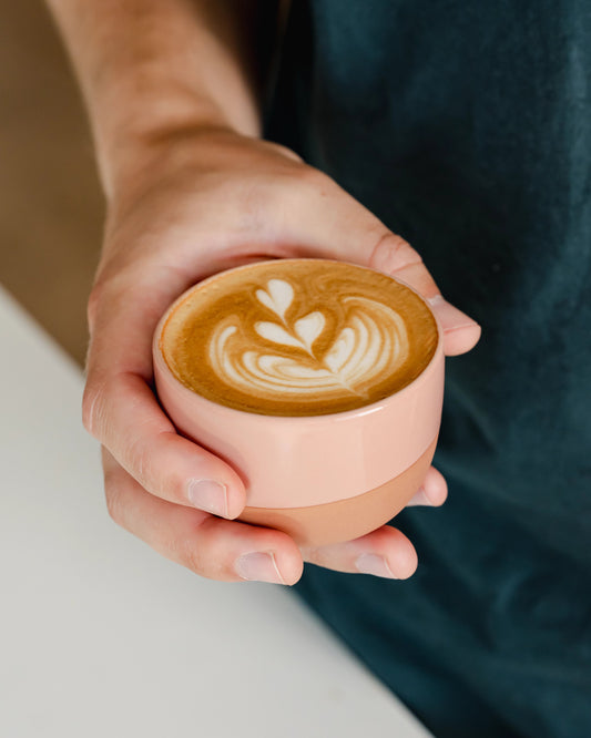 Terracotta Pink for sweetness: A soft pink hue enhances the sweet notes in your cappuccino. Perfect with our Cuban beans!