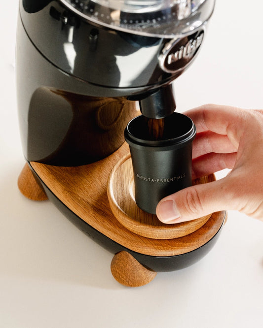 Since most single dosing grinders don’t have a holder for your portafilter, a dosing cup can be a handy solution. Simply place it under your grinder to catch your coffee with ease.