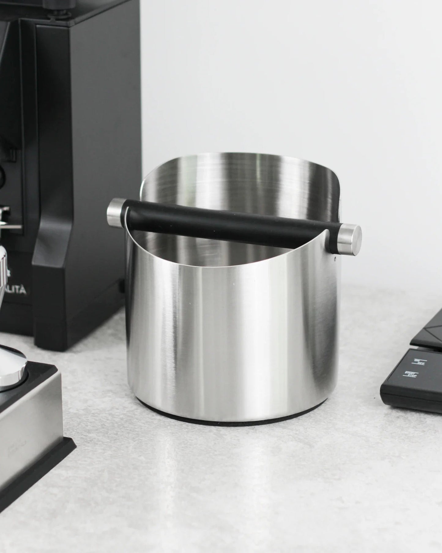 Choose this coffee knock box in black or silver today.