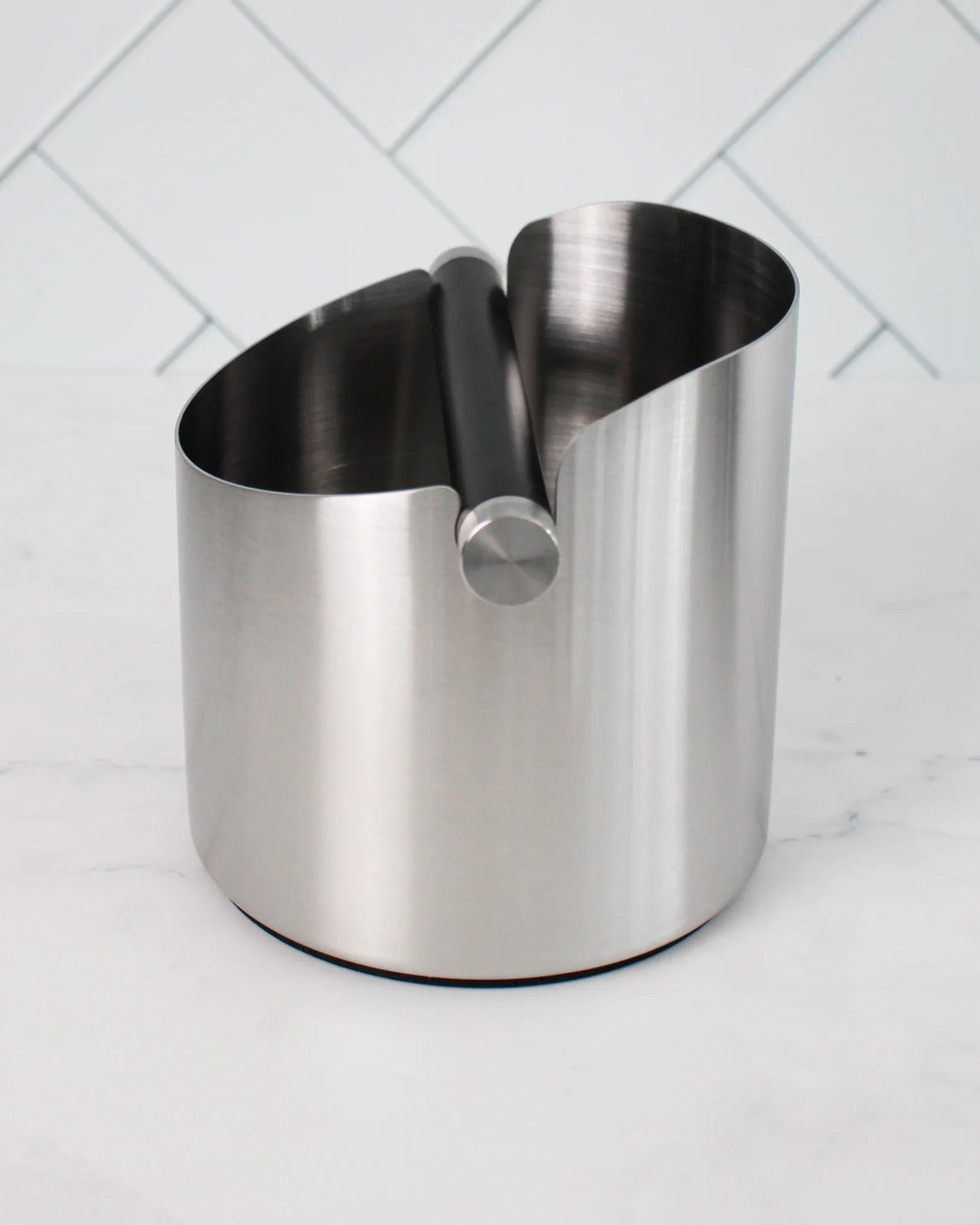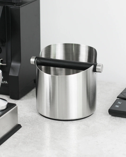 Easily knock out used coffee pucks into this stainless steel coffee knock box.