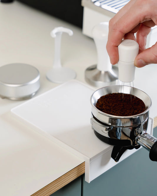That had to change. So at Barista-Essentials, we started looking for a better solution. We came across plenty of tamping mats in the strangest shapes, often with dedicated slots for your tamper (as if you don’t already have enough barista tools).