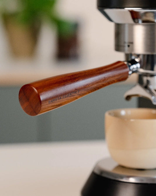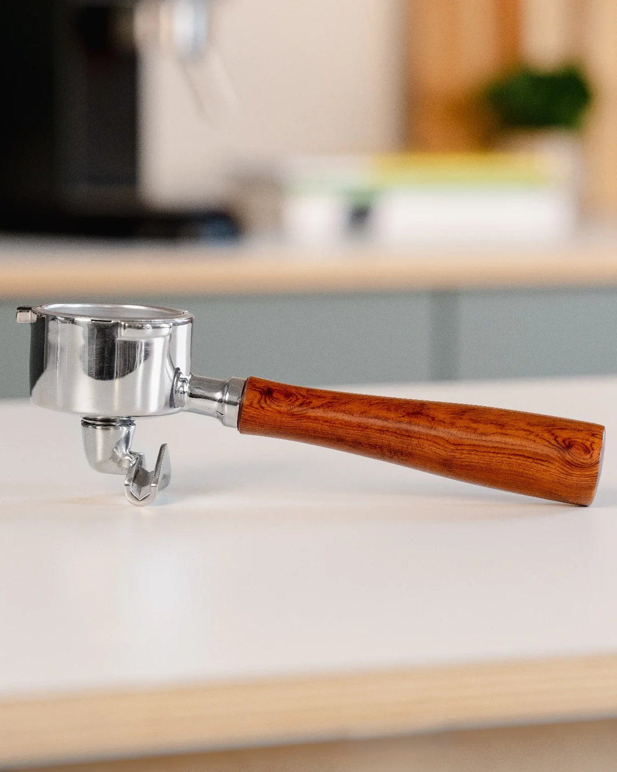 Our wooden and plastic handles are made from the same materials as the handles of our coffee tampers. We also offer bottomless portafilters with matching handles.