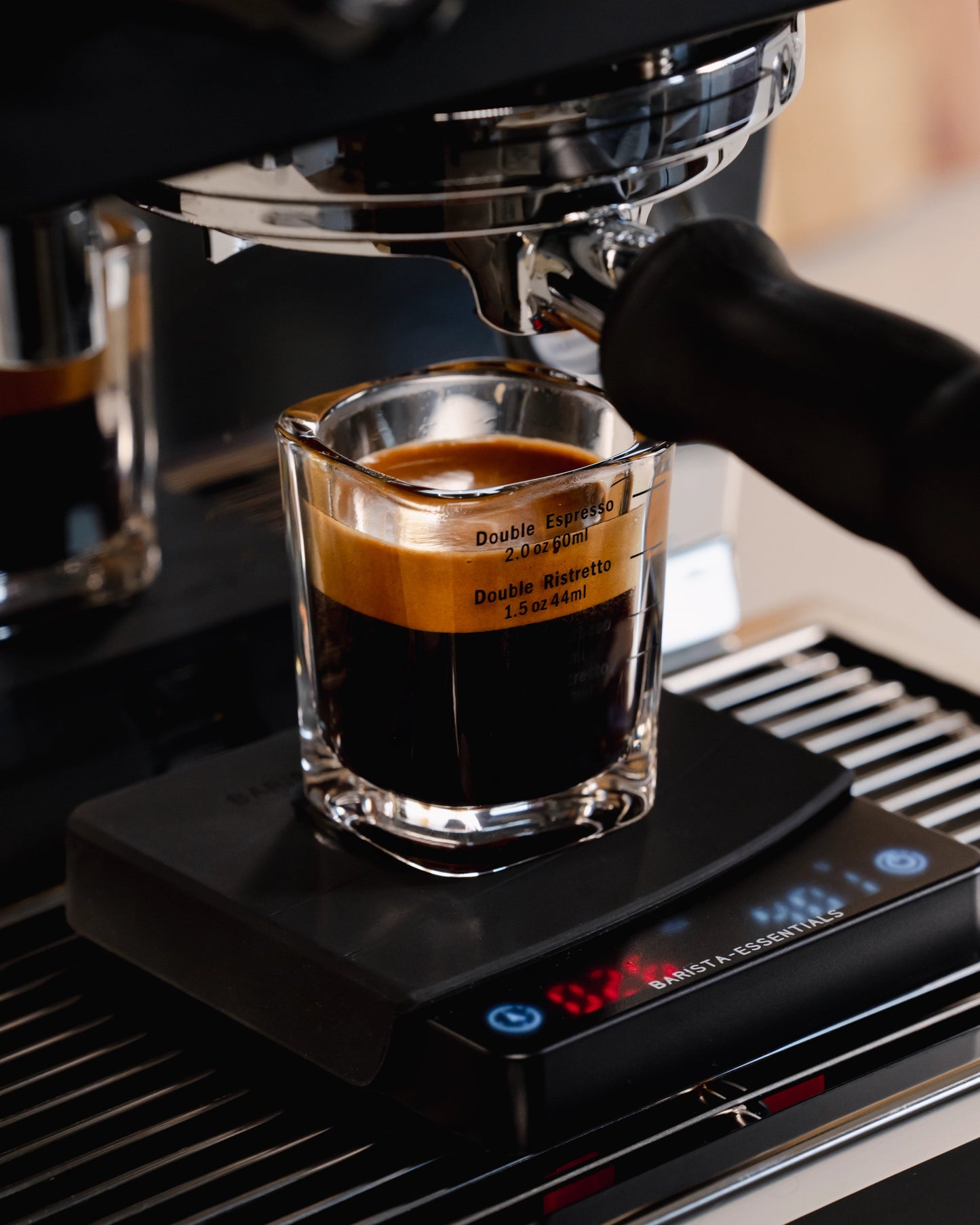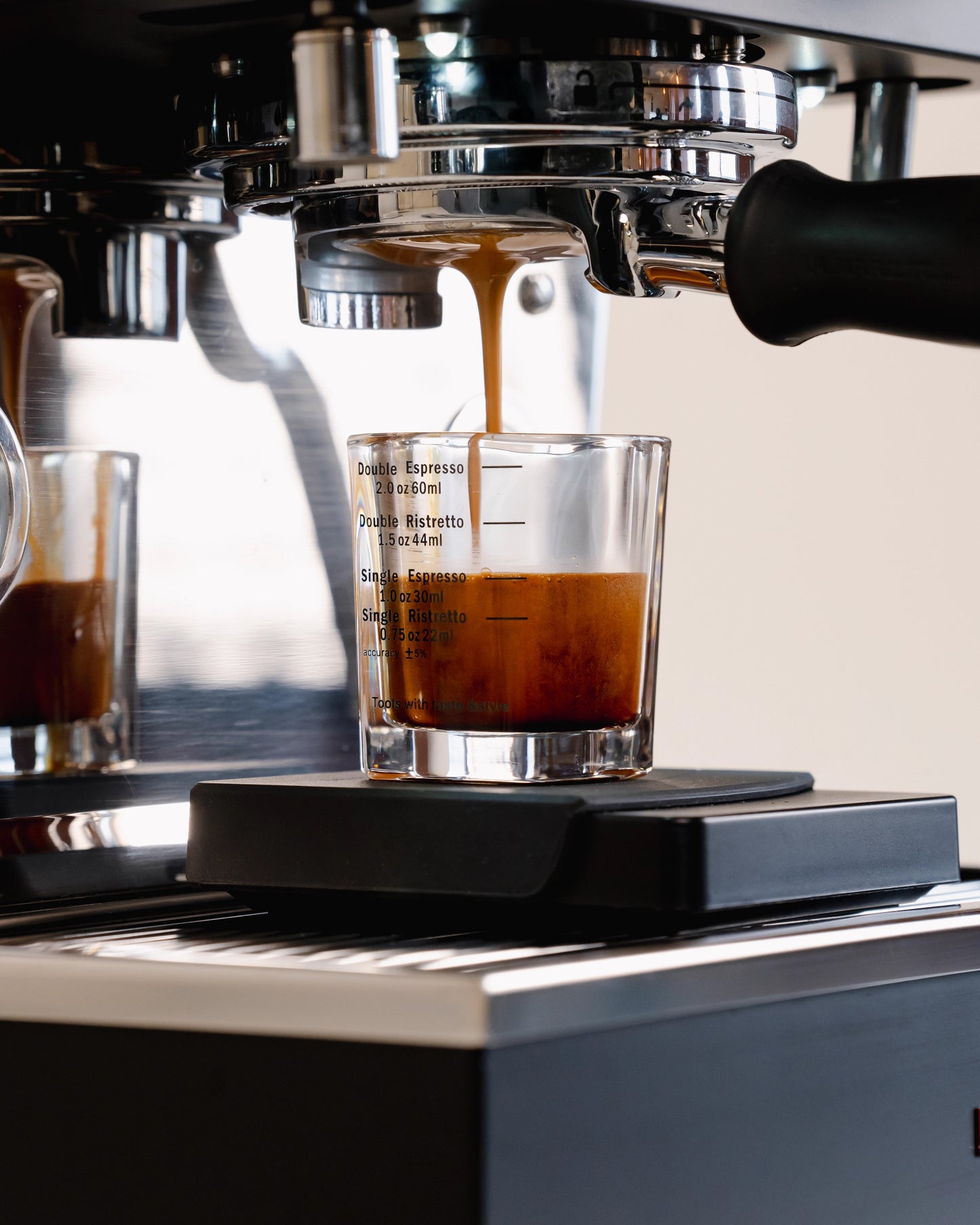 Don’t want to leave anything to chance? Then we also recommend using a coffee scale. It lets you weigh both your ground coffee and the espresso flowing into your cup — down to the gram.