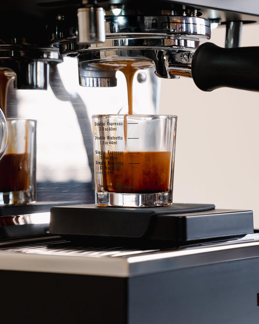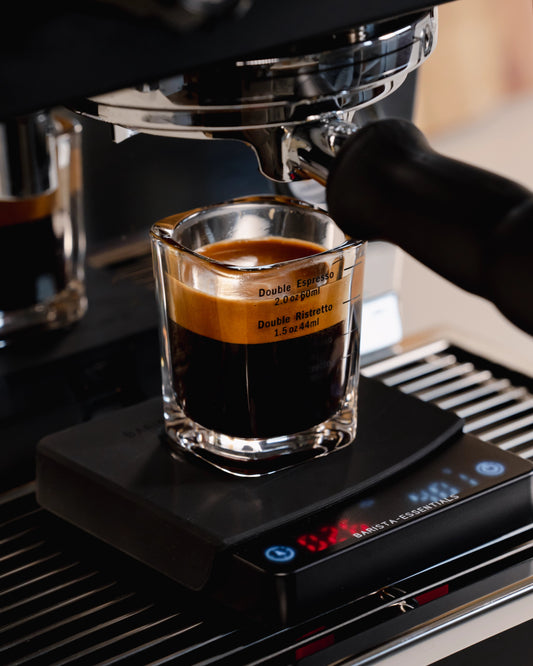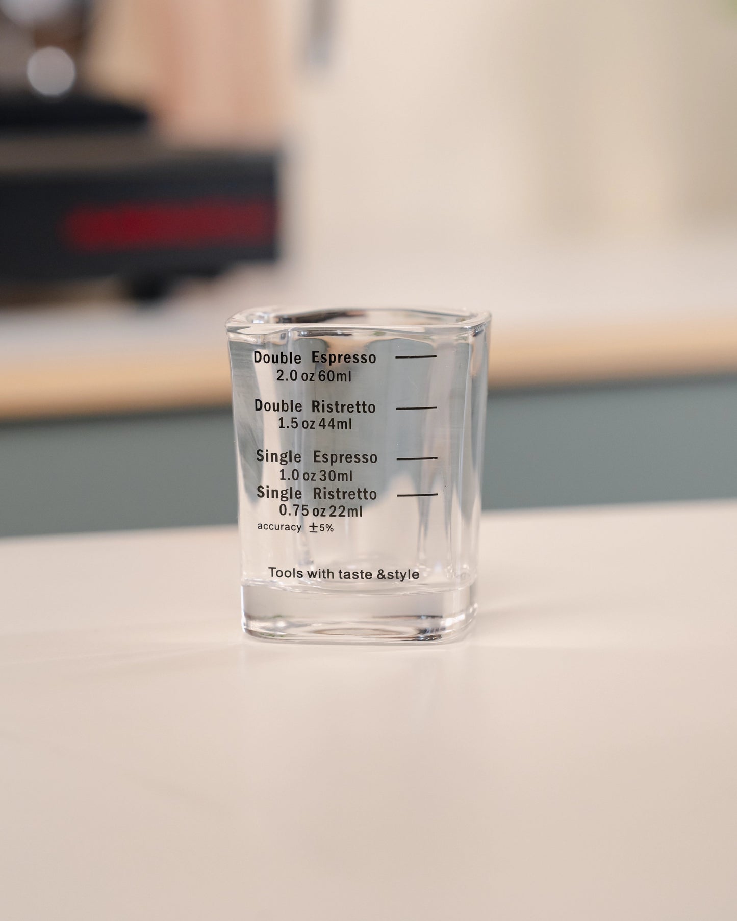 With this espresso glass, you can instantly see how your extraction is going. The crema layer is visible right away, and the measurement lines let you check whether enough coffee is flowing through your portafilter.
