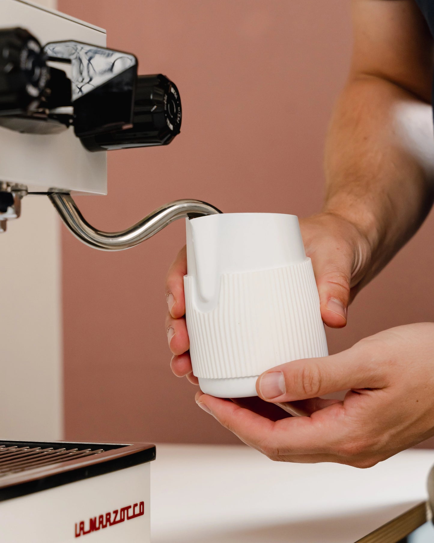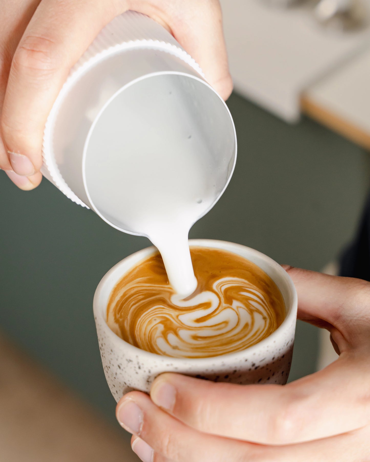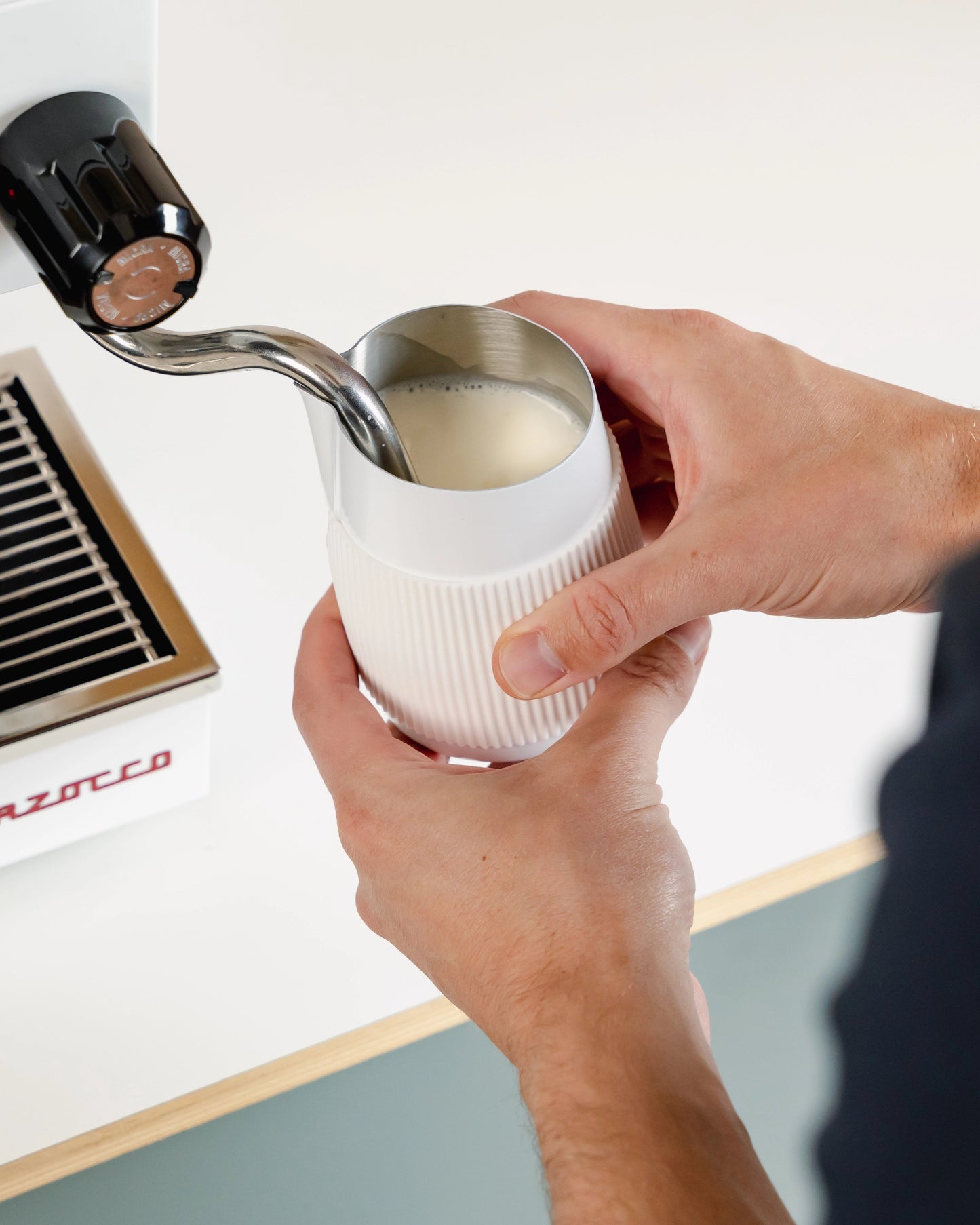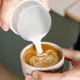 If you’ve already mastered all this, let us introduce you to a new variable: the time between your hand moving and the milk moving. A handleless milk pitcher is the answer to minimising this delay.