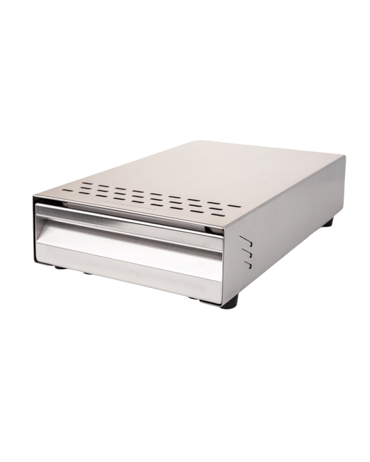 Vores kompakte knock box skuffe i rustfrit stål er nem at bruge og vedligeholde. Alle dele tåler opvaskemaskine.
