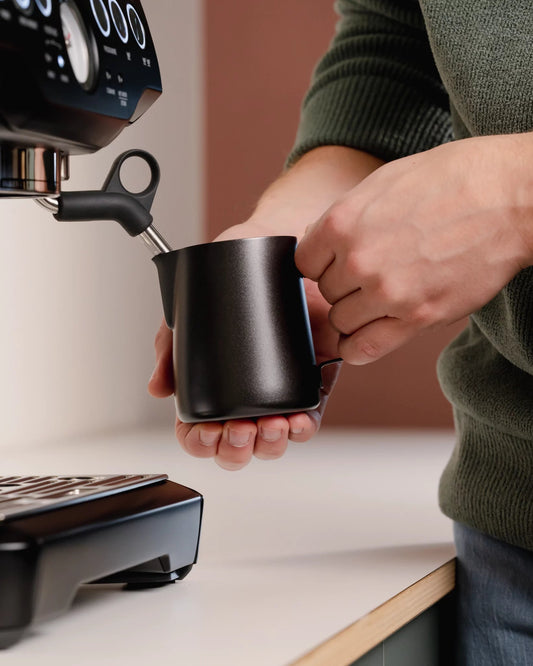 Med hvert sæt får du også en mælkeskummekande. Altid praktisk.
