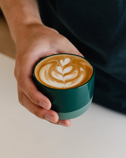 If a latte or large cappuccino is your go-to coffee, you’ll want a fitting cup for it. One in which the milk and espresso are in perfect balance and the coffee feels great to drink.