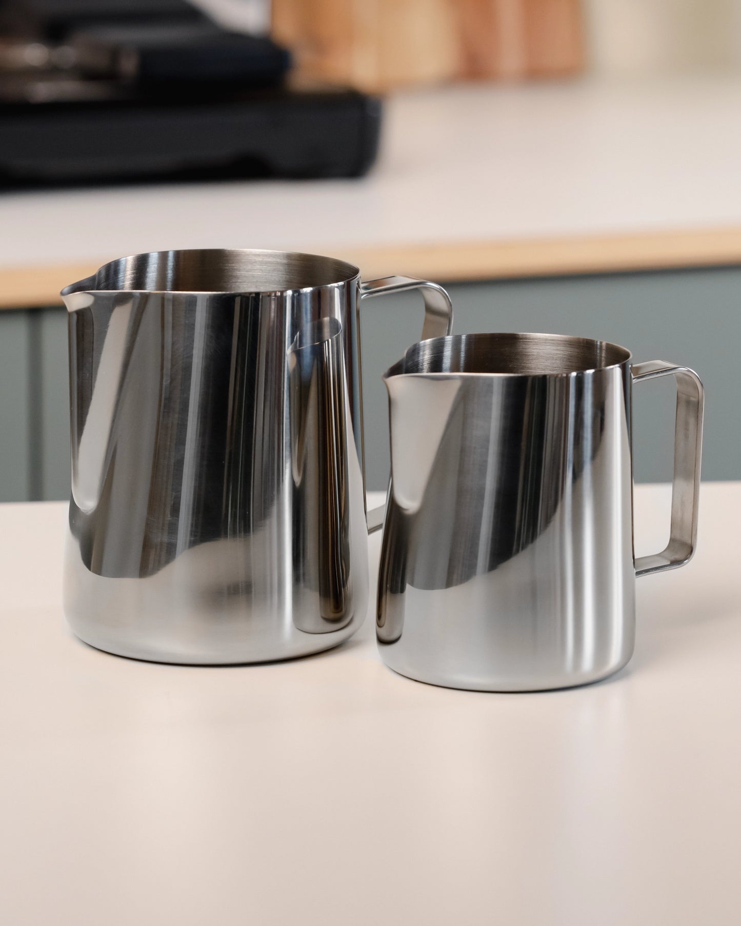 The Milk Frothing Jug Set includes two jugs in your chosen style.